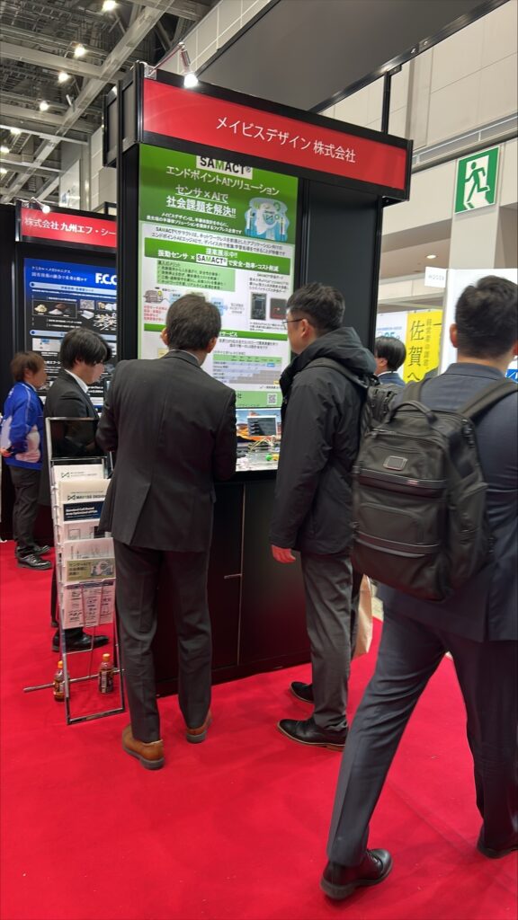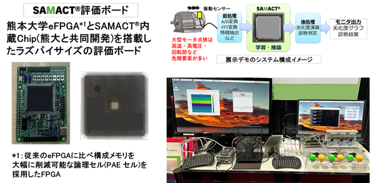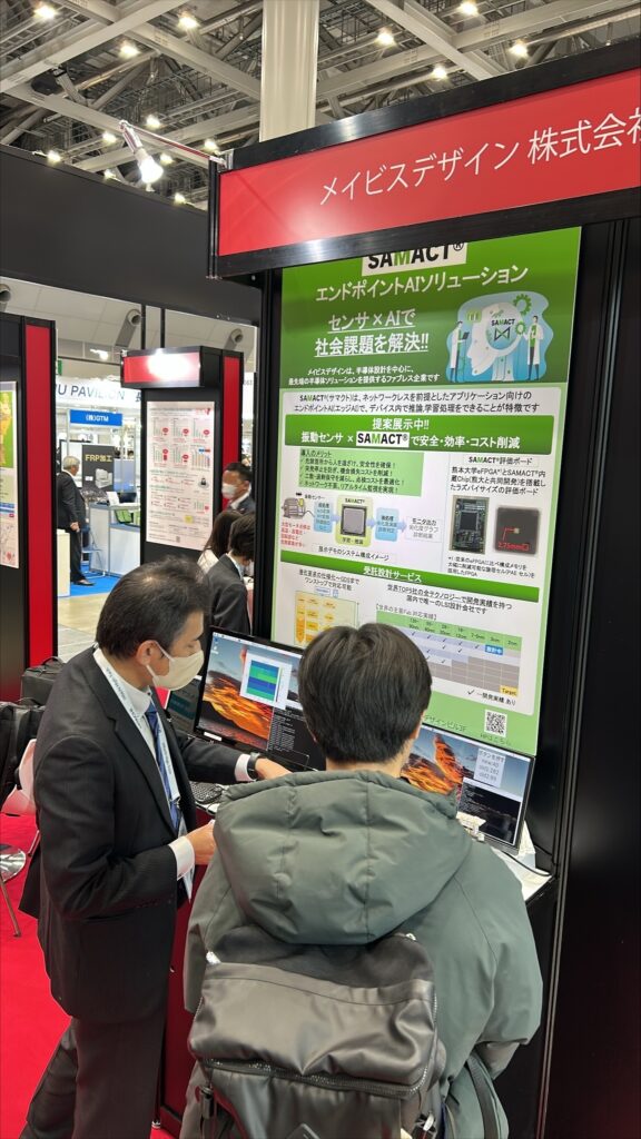 さらに、製造現場で課題となっているメンテナンス効率化を実現するソリューションとして、当社開発のエンドポイントAI「SAMACT®」を活用した「モータ故障予兆検知」実機デモを初公開しました。